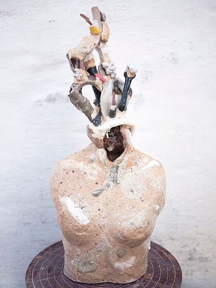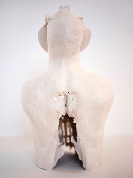 2018Guldagergaard - International Ceramic Research Centre Project Network #2 This research centre is located in a historic park in the port town of Skælskør. During walks along the fjord, Anna Steinhäusler collected materials typical of this landscape, such as shells and seagull skeletons. As these consist largely of calcium, they can be used as raw materials for ceramics. The sculptures are based on the idea that the landscape in which people grow up has an effect on them.